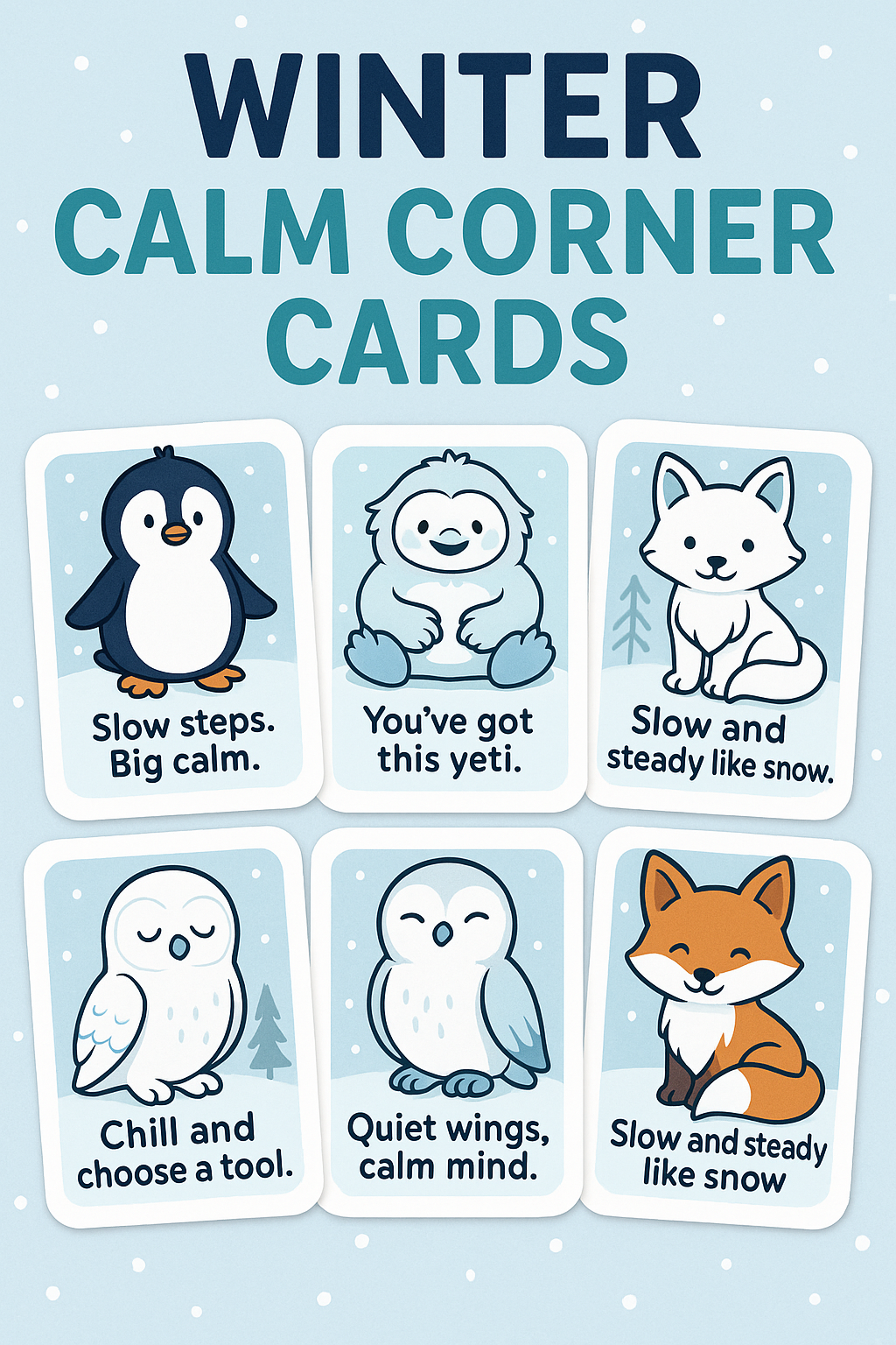🧊 Regulation cards (Snowflake Breathing, Cozy Yeti Reset, etc.)